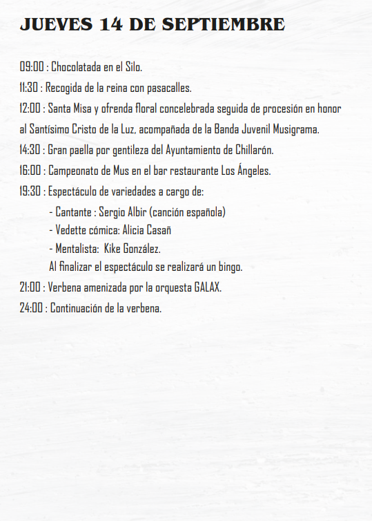 Fiestas Patronales de Chillarón de Cuenca en honor al Santísimo Cristo de la Luz 2023