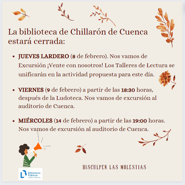 El Ayuntamiento, la Biblioteca, el AMPA y el Plan Corresponsables de Chillarón de Cuenca colaboramos para ofrecerte el mejor plan para este Jueves Lardeo. No importa la edad que tengas ¡Te esperamos!