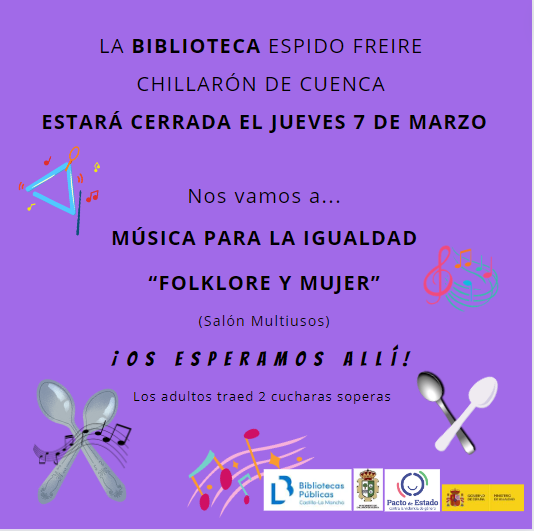 Con motivo de estas actividades, el día 7 de Marzo la Biblioteca Municipal Espido Freire permanecerá cerrada.